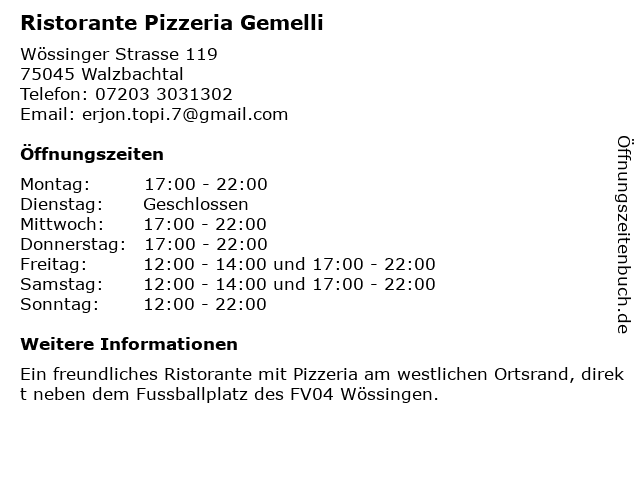 Branchen & Suchbegriffe zu Ristorante Pizzeria Gemelli:gemelli, pizzeria, restaurant-lieferservice, restaurants, ristorante |