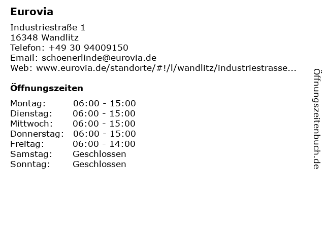 | Öffnungszeiten Eurovia in Wandlitz anzeigen | |