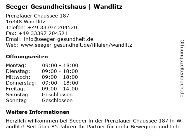 3 Seeger Gesundheitshaus GmbH & Co. KG (Entfernung: 12,07 km) Breitscheidstraße 23, 16321 Bernau bei Berlin 5 6 |