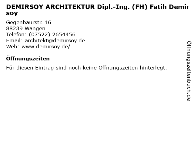| DEMIRSOY ARCHITEKTUR Dipl.-Ing. (FH) Fatih Demirsoy anrufen | |