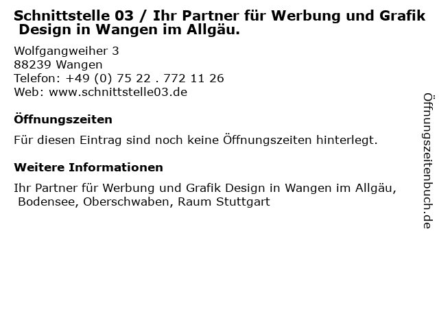 | Schnittstelle 03 / Ihr Partner für Werbung und Grafik Design in Wangen im Allgäu. anrufen | |