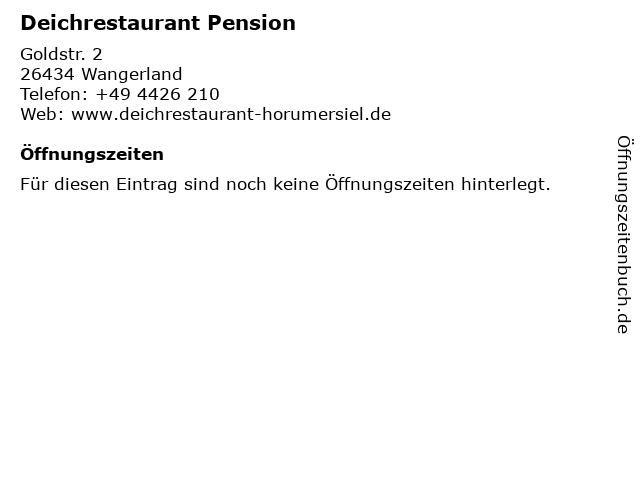 | Öffnungszeiten Deichrestaurant Pension in Wangerland anzeigen | |