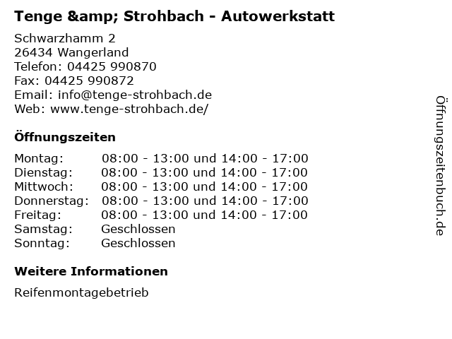 Branchen & Suchbegriffe zu Tenge & Strohbach - Autowerkstatt:achsvermessung, autowerkstatt, hauptuntersuchungen, instandsetzung, reifendienst, reifenmontage, reparaturen, strohbach, tenge |