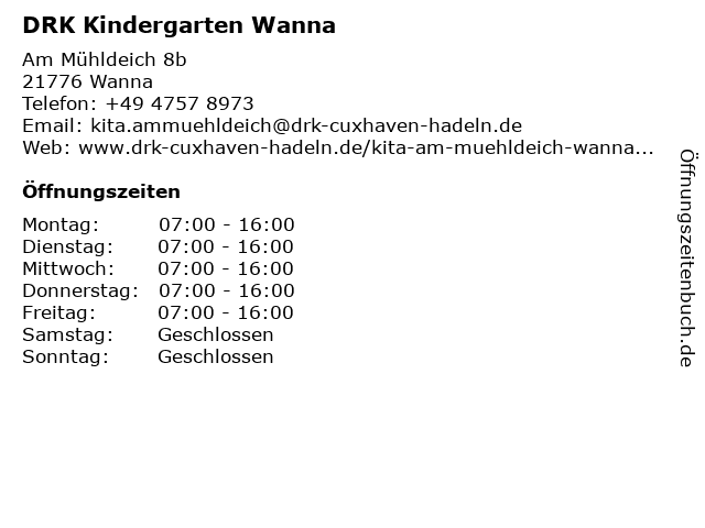 | Öffnungszeiten DRK Kindergarten Wanna in Wanna anzeigen | |