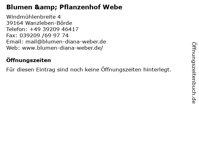 2 Eckhardt Dietrich Blumen- u. Pflanzengroßhdl. (Entfernung: 2,55 km) Hahneberger Weg 4, 39164 Wanzleben-Börde 3 Blumen-Geschenke Angela Franke - Deutsche Post Filiale (Entfernung: 9,38 km) Straße zur Badeanstalt 2, 39171 Sülzetal 6 |