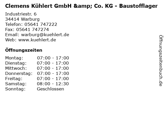 Branchen & Suchbegriffe zu Clemens Kühlert GmbH & Co. KG - Baustofflager:auslieferungslager, baustoffe, baustofflager, clemens, co, großhandel, kühlert, lager |