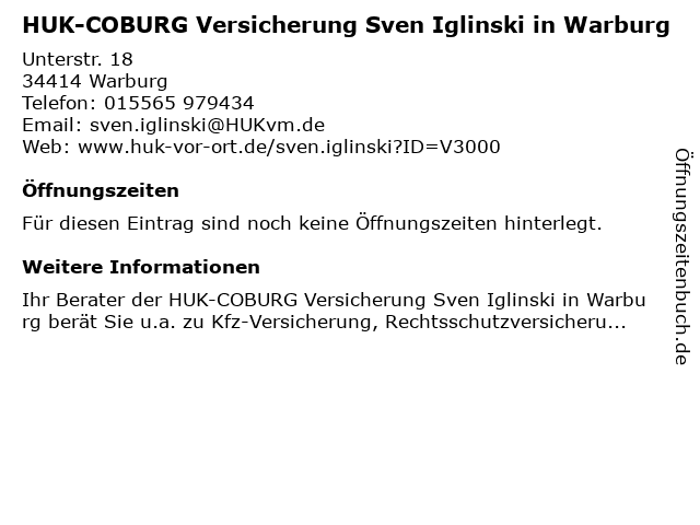| HUK-COBURG Versicherung Sven Iglinski in Warburg anrufen | |