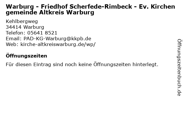 | Warburg - Friedhof Scherfede-Rimbeck - Ev. Kirchengemeinde Altkreis Warburg anrufen | |