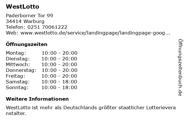 Öffnungszeiten WestLotto in Warburg anzeigen