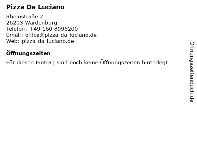 | Öffnungszeiten Pizza Da Luciano in Wardenburg anzeigen | |
