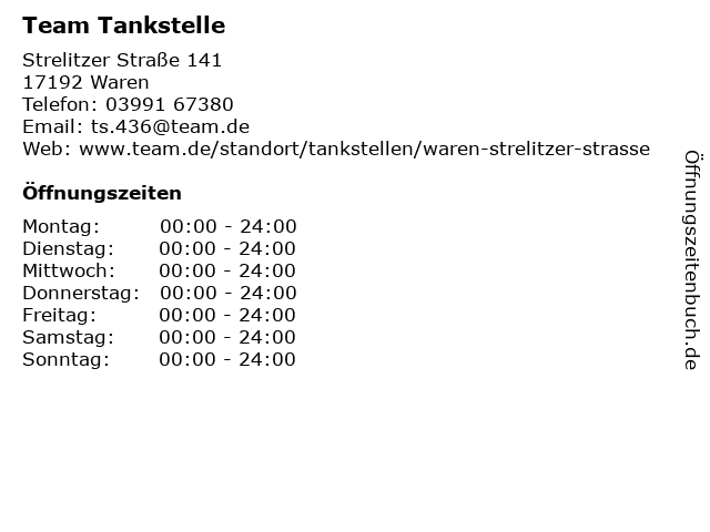 | Öffnungszeiten Team Tankstelle in Waren anzeigen | |