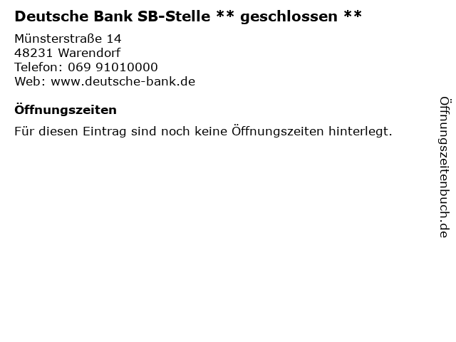 Branchen & Suchbegriffe zu Deutsche Bank SB-Stelle ** geschlossen **:**, bank, bankomat, deutsche, geschlossen, sb, stelle, versicherungsagentur |