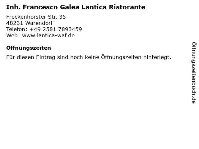 | Inh. Francesco Galea Lantica Ristorante anrufen | |