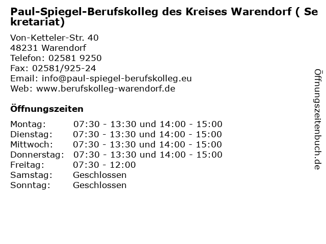 Branchen & Suchbegriffe zu Paul-Spiegel-Berufskolleg des Kreises Warendorf ( Sekretariat):berufliche, berufsaufbauschulen, berufsfachschulen, berufskolleg, des, gewerbliche, handelsschulen, kreises, paul, schulen, sekretariat, spiegel, wirtschaftsoberschulen, wirtschaftsschulen |