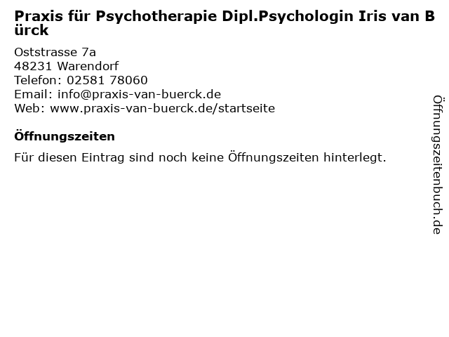 | Praxis für Psychotherapie Dipl.Psychologin Iris van Bürck anrufen | |