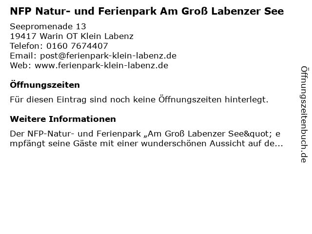 | NFP Natur- und Ferienpark Am Groß Labenzer See anrufen | |