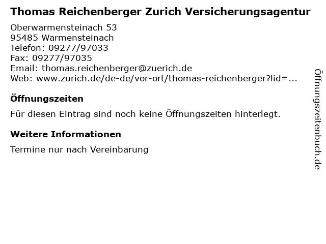 | Thomas Reichenberger Zurich Versicherungsagentur anrufen | |