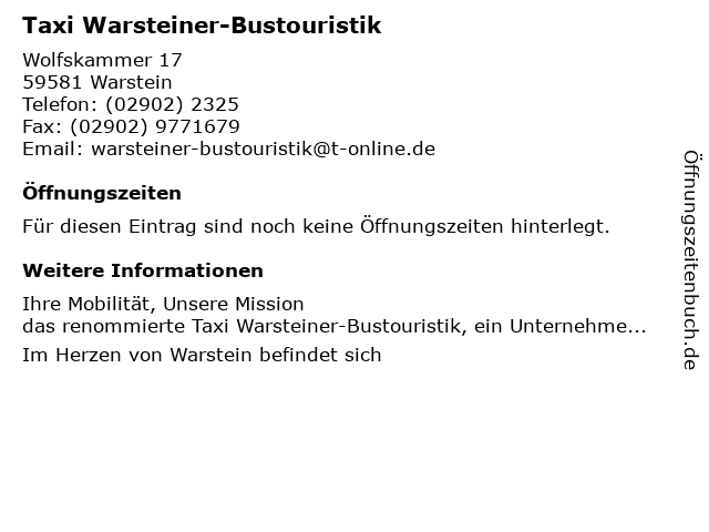 | Taxi Warsteiner-Bustouristik anrufen | |