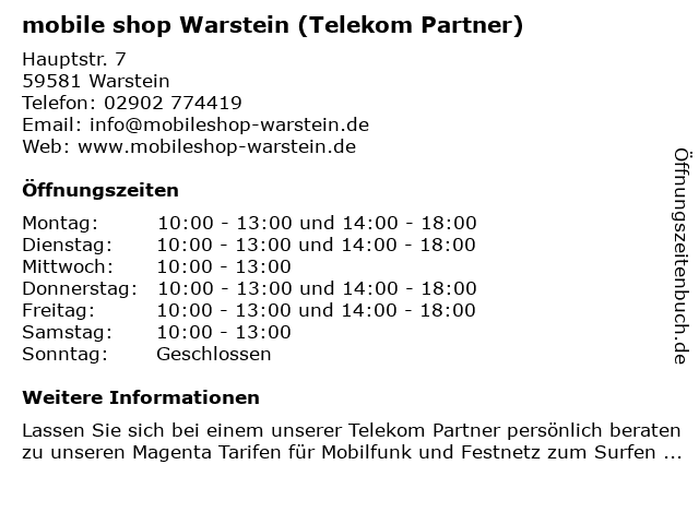 Branchen & Suchbegriffe zu mobile shop Warstein (Telekom Partner):geschäft für handyzubehör, internetanbieter, mobile, partner, shop, telefonanbieter, telekom, wlan |