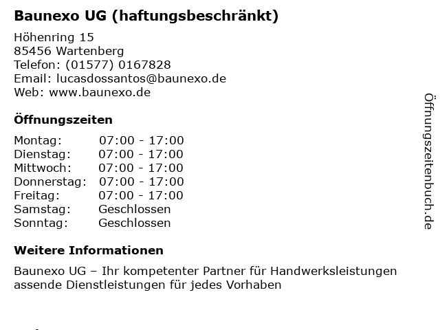 1 sportspirit & consult UG (haftungsbeschränkt) (Entfernung: 1,35 km) Erdinger Str. 13, 85456 Wartenberg 4 6 Trattoria Ca del Bosco UG (haftungsbeschränkt) & Co. KG (Entfernung: 15,96 km) Roider-Jackl-Weg 1, 85356 Freising |