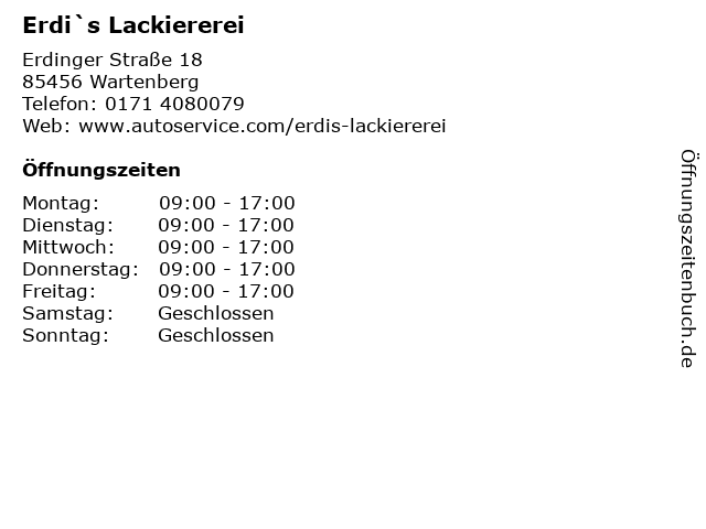 | Öffnungszeiten Erdi`s Lackiererei in Wartenberg anzeigen | |