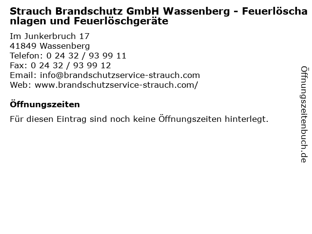 | Strauch Brandschutz GmbH Wassenberg - Feuerlöschanlagen und Feuerlöschgeräte anrufen | |