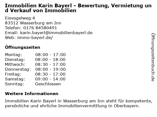 Branchen & Suchbegriffe zu Immobilien Karin Bayerl - Bewertung, Vermietung und Verkauf von Immobilien:bayerl, bewertung, börsenmakler, gewerbliche immobilienagentur, immobilien, karin, verkauf, vermietung, von, wohnungsvermietungsagentur |