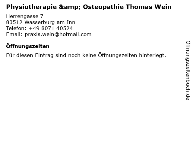 | Physiotherapie & Osteopathie Thomas Wein anrufen | |