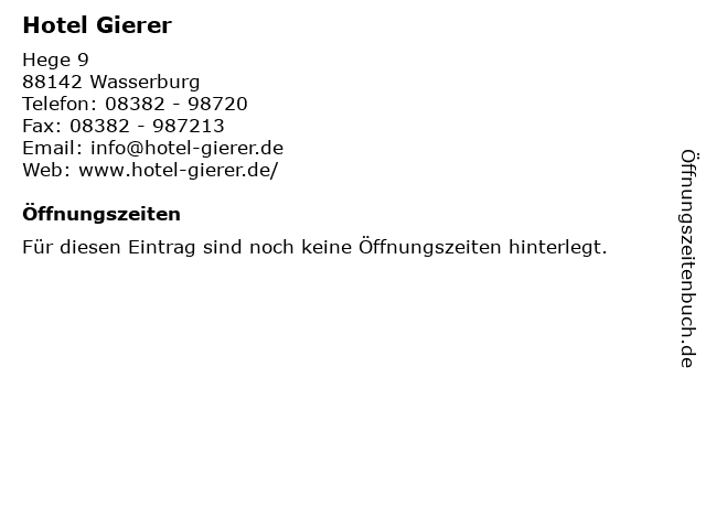 | Öffnungszeiten Hotel Gierer in Wasserburg anzeigen | |
