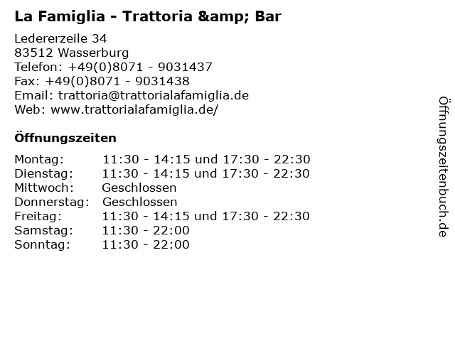 Branchen & Suchbegriffe zu La Famiglia - Trattoria & Bar:bar, essen, famiglia, gastronomie, italienisch, la, pizzeria, restaurant, ristorante, speisen, trattoria |