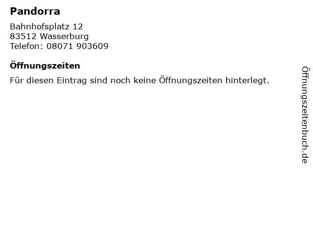 | Öffnungszeiten Pandorra in Wasserburg anzeigen | |