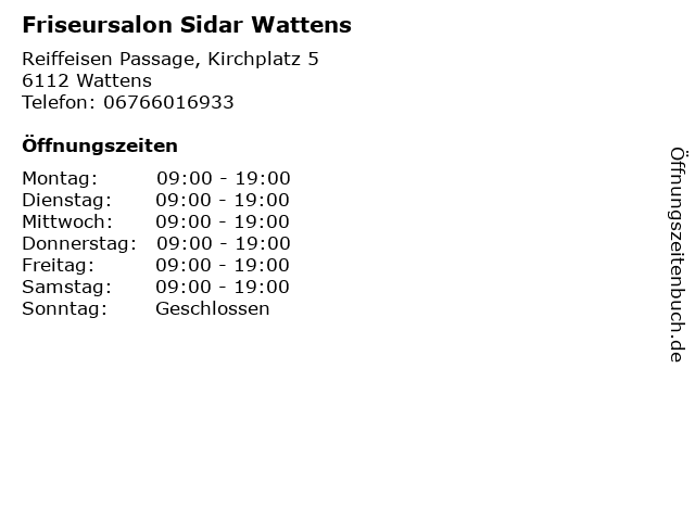 | Öffnungszeiten Friseursalon Sidar Wattens in Wattens anzeigen | |