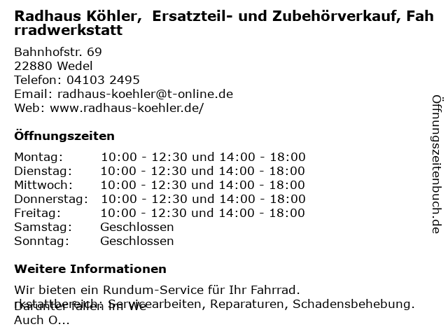 Branchen & Suchbegriffe zu Radhaus Köhler, Ersatzteil- und Zubehörverkauf, Fahrradwerkstatt:ersatzteil, fahrradwerkstatt, köhler, radhaus, zubehörverkauf |
