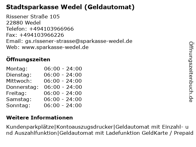 | Öffnungszeiten Stadtsparkasse Wedel (Filiale) in Wedel anzeigen | |