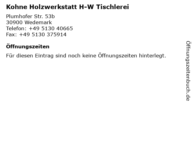 | Kohne Holzwerkstatt H-W Tischlerei anrufen | |