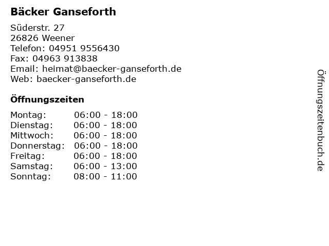 | Öffnungszeiten Bäcker Ganseforth in Weener anzeigen | |