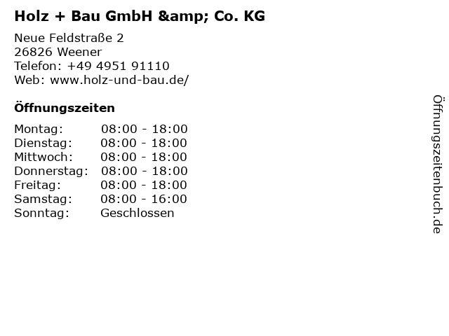 Öffnungszeiten Holz + Bau GmbH & Co. KG