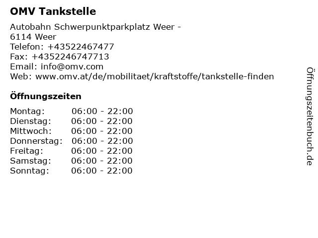 | Öffnungszeiten OMV Tankstelle in Weer anzeigen | |