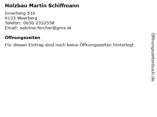 | Öffnungszeiten Holzbau Martin Schiffmann in Weerberg anzeigen | |