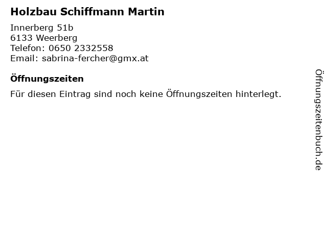 | Öffnungszeiten Holzbau Schiffmann Martin in Weerberg anzeigen | |