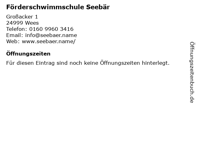 | Öffnungszeiten Förderschwimmschule Seebär in Wees anzeigen | |