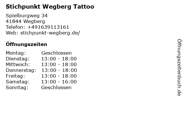 | Öffnungszeiten Stichpunkt Wegberg Tattoo in Wegberg anzeigen | |