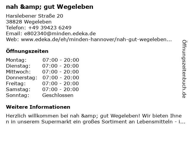 | Öffnungszeiten nah & gut Wegeleben in Wegeleben anzeigen | |