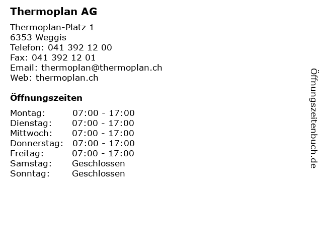 | Öffnungszeiten Thermoplan AG in Weggis anzeigen | |