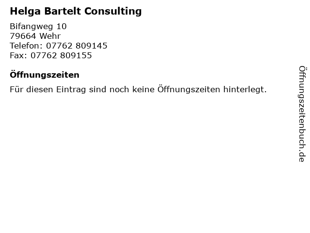| Öffnungszeiten Helga Bartelt Consulting in Wehr anzeigen | |