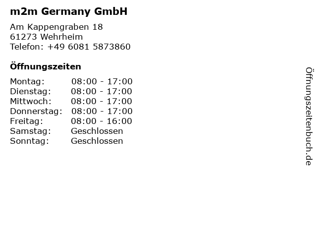 | Öffnungszeiten m2m Germany GmbH in Wehrheim anzeigen | |
