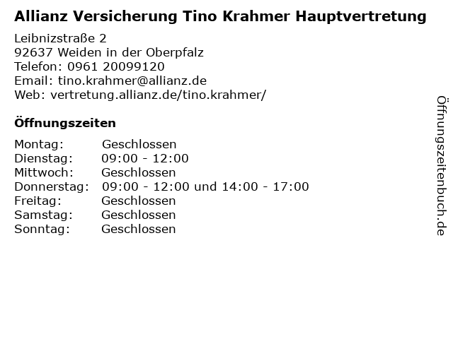 1 Allianz Versicherung Patrick Scherübl Hauptvertretung (Entfernung: 0,00 km) Leibnizstraße 2, 92637 Weiden in der Oberpfalz 3 SDK Süddeutsche Krankenversicherung - Bezirksvertretung Tino Krahmer (Entfernung: 1,49 km) Raiffeisenstraße 2, 92637 Weiden 4 Mecklenburgische Versicherungsgruppe - Hauptvertretung Berthold Wirth (Entfernung: 10,27 km) Mühlgraben 1, 92685 Floß 5 Allianz Versicherung Schneidemesser Hauptvertretung (Entfernung: 10,62 km) Grünauer Straße 1, 92706 Luhe-Wildenau 6 |