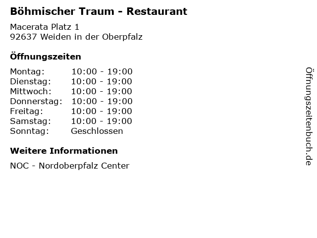 | Öffnungszeiten Böhmischer Traum - Restaurant in Weiden in der Oberpfalz anzeigen | |