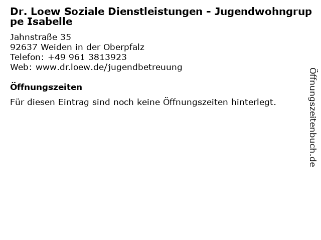 | Dr. Loew Soziale Dienstleistungen - Jugendwohngruppe Isabelle anrufen | |
