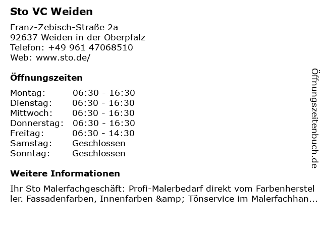 Branchen & Suchbegriffe zu Sto VC Weiden:farbenfachhandel, farbenhersteller, fassadenfarben, innenfarben, malerbedarf, malerfachgeschäft, malerfachhandel, malerfarben fachgeschäft, malergroßhandel, profi malerfarben, profi-malerfarben, sto, sto farbe kaufen, sto in der nähe, sto verkaufscenter, tönservice, vc |